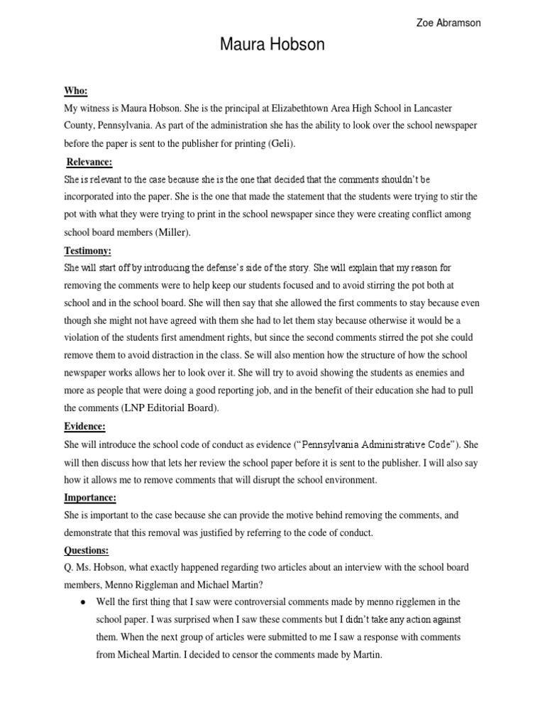 Miller, Barnra. “Student Claims School Paper Was Wrongly Censored.” Penn Live, 28