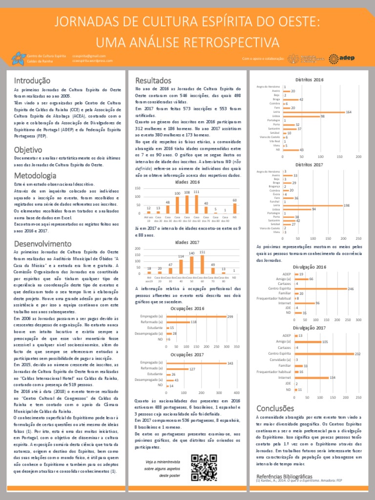 Documentar e analisar estatisticamente os dois últimos anos das Jornadas de Cultura Espírita do Oeste.