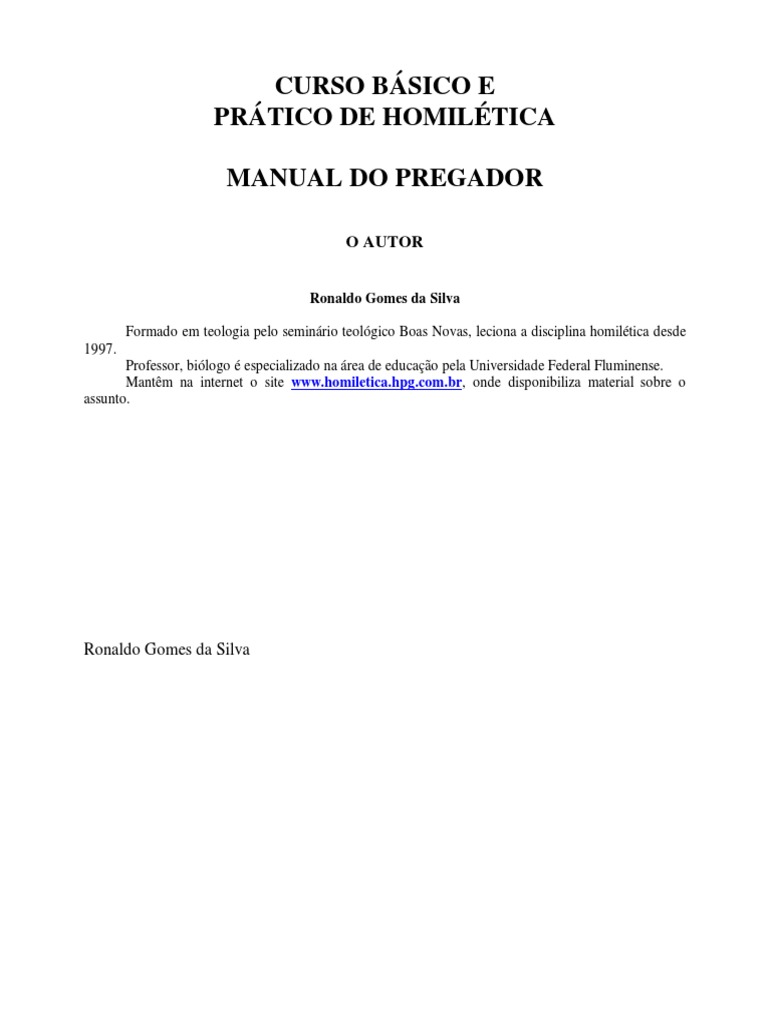 conceitos pomposos. Na verdade é um manual, que mescla a formalidade da homilética com a