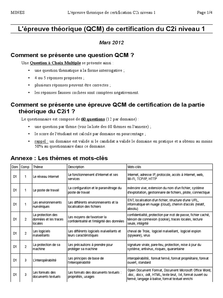 MINES L'épreuve théorique de certification C2i niveau 1 Page 2/4