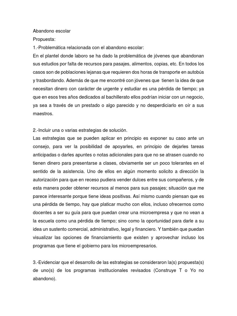 1.-Problemática relacionada con el abandono escolar: