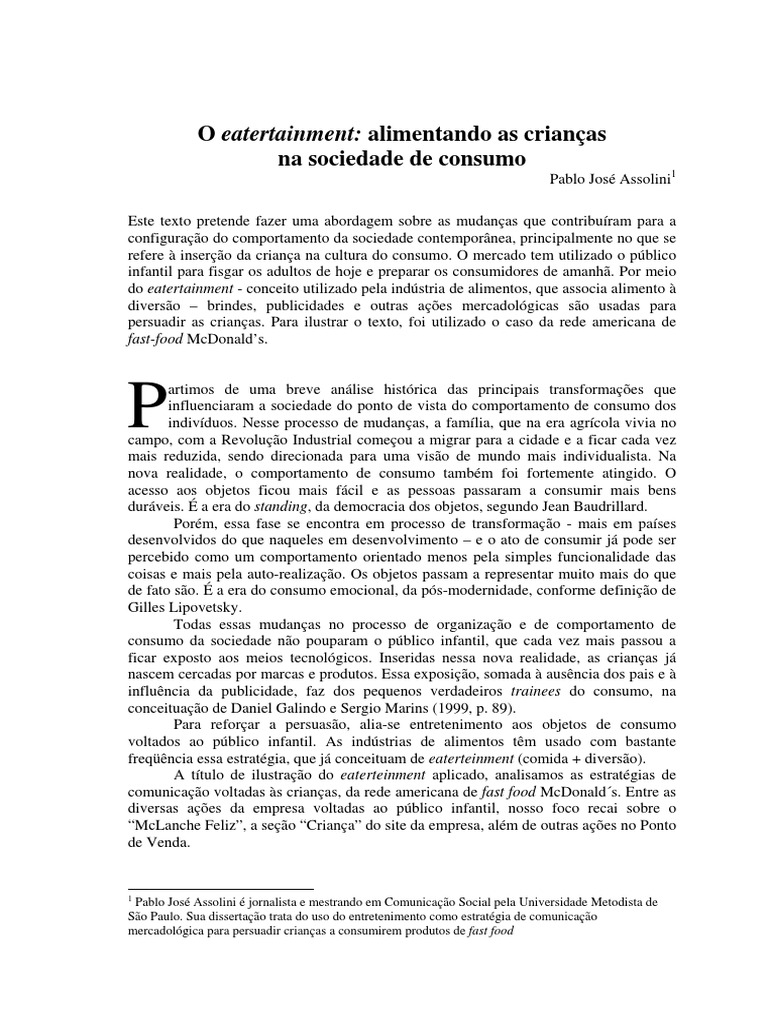 comunicação voltadas às crianças, da rede americana de fast food McDonald´s. Entre as