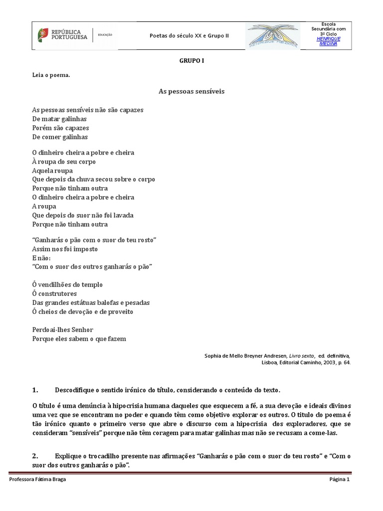 Poetas do século XX e Grupo II HENRIQUE