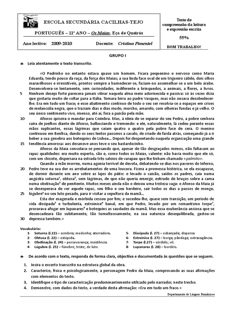 numa obstinação3 de penitente. Muitos meses ainda não o deixou uma tristeza vaga: e Afonso da Maia já