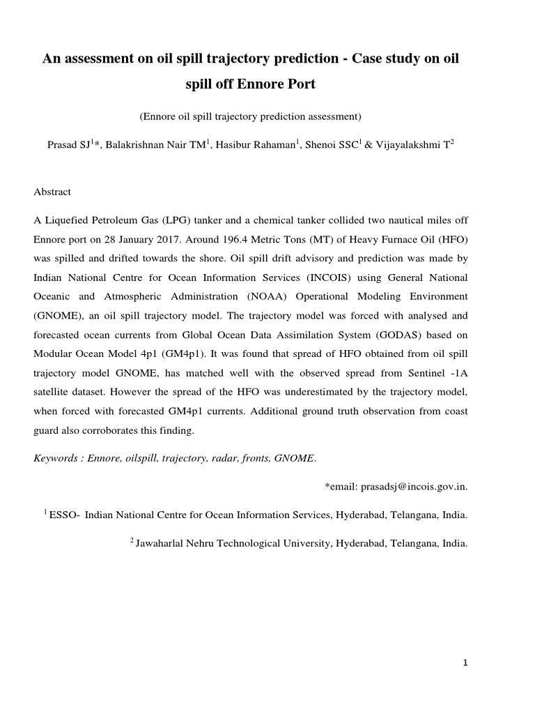 43 Keywords : Ennore, oilspill, trajectory, radar, fronts, GNOME.