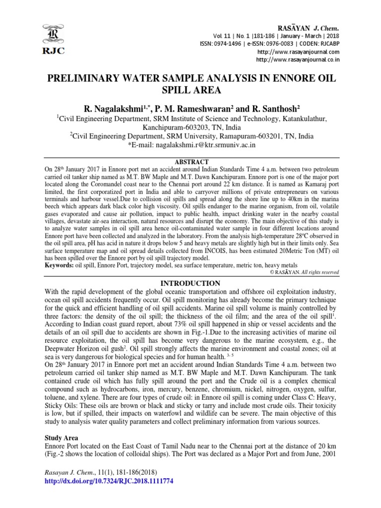WATER SAMPLE ANALYSIS IN ENNORE OIL SPILL AREA R. Nagalakshmi et al.