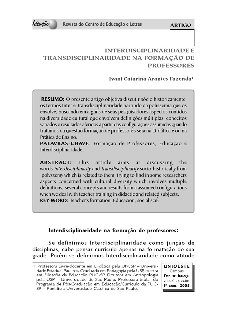 __________ - Interdisciplinaridade – História, Teoria e Pesquisa.