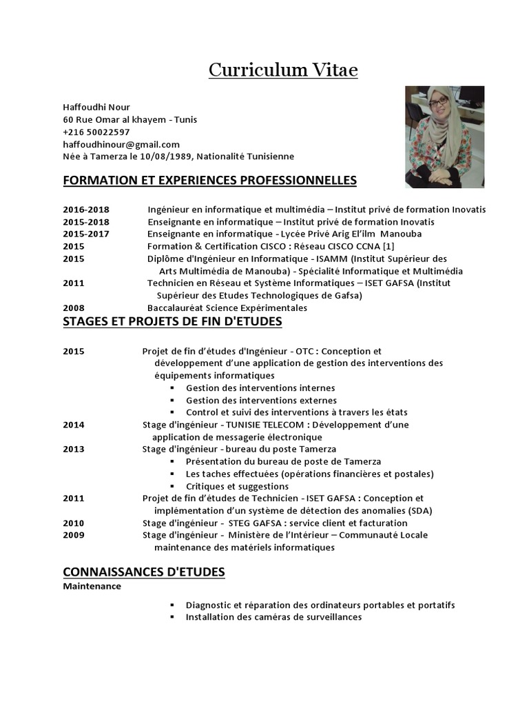 2015-2017 Enseignante en informatique - Lycée Privé Arig El’ilm Manouba