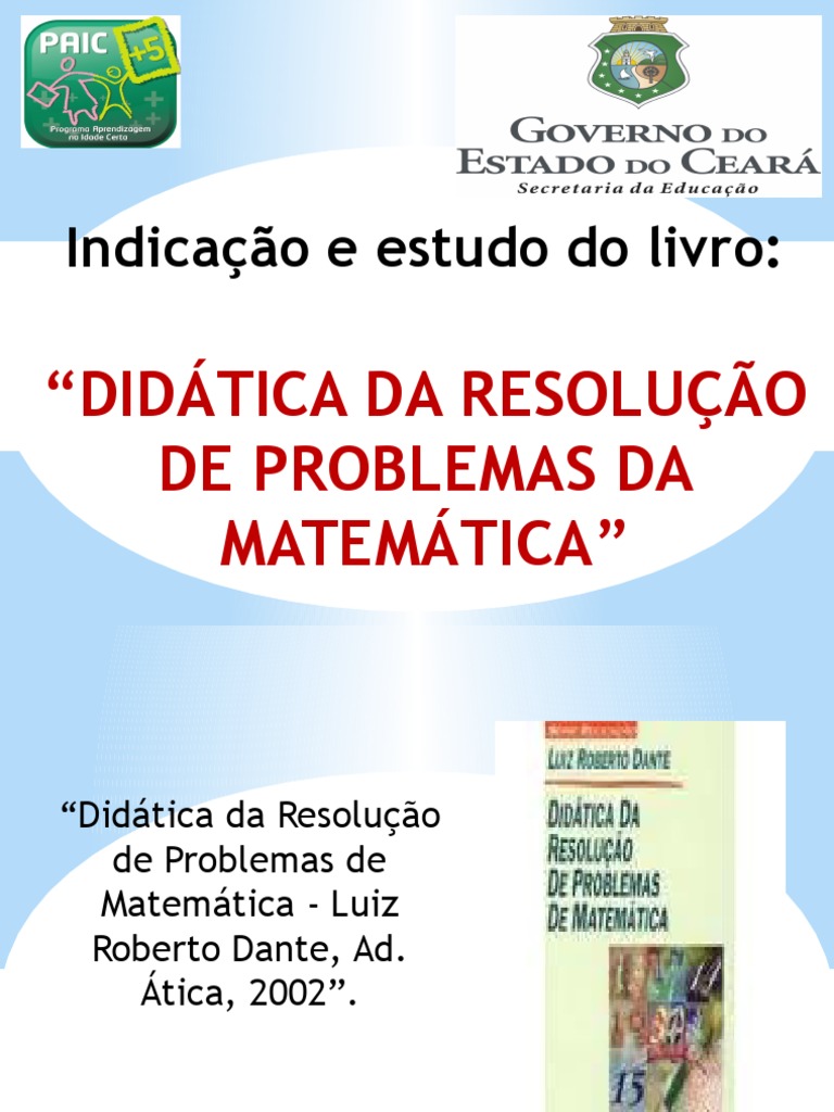 “Didática da Resolução de Problemas de Matemática - Luiz Roberto Dante, Ad. Ática, 2002”.