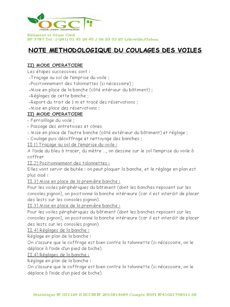 NOTE METHODOLOGIQUE DU COULAGES DES VOILES