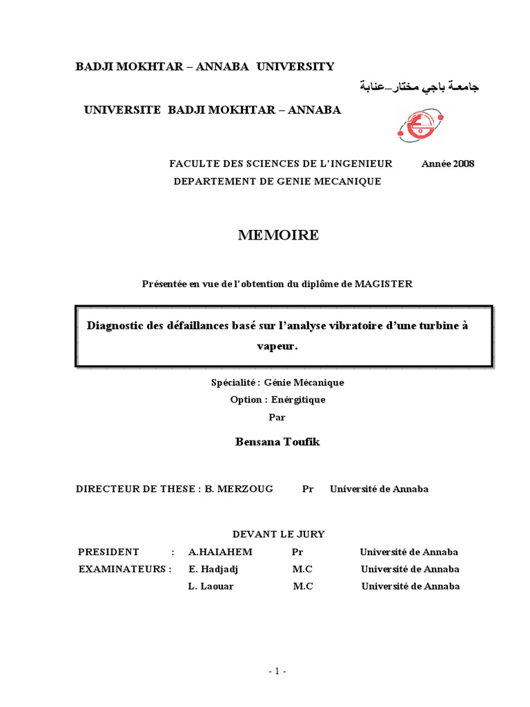 « DIAGNOSTIC VIBRATOIRE DES MACHINES TOURNANTES » thèse de magistère