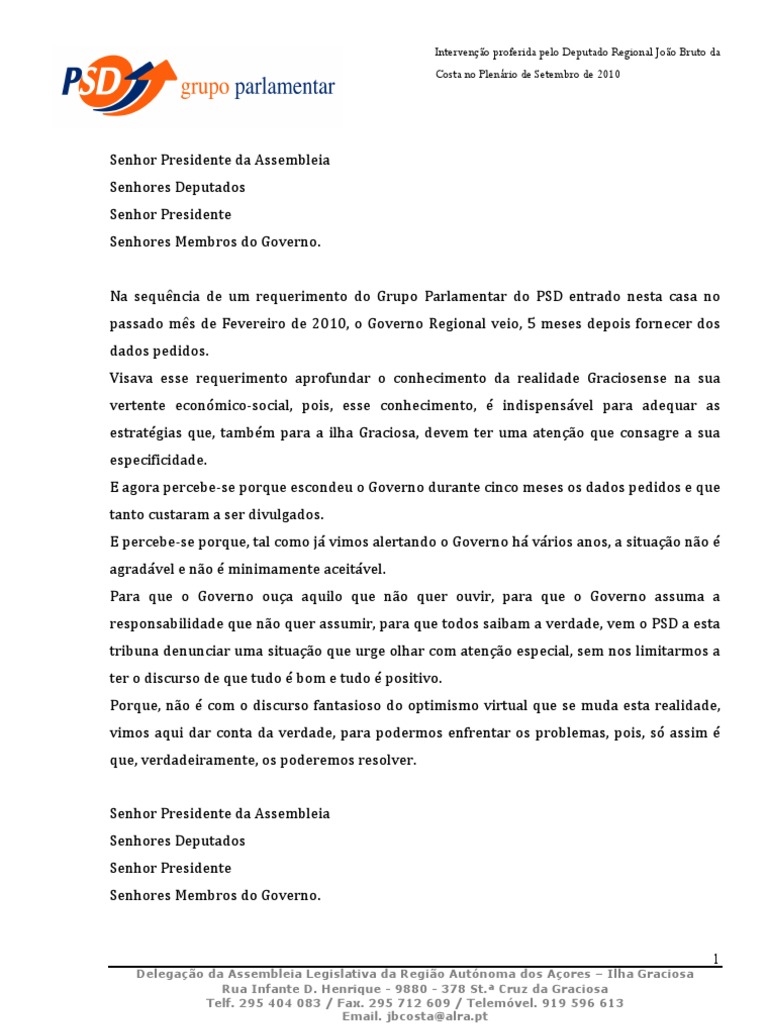 Intervenção proferida pelo Deputado Regional João Bruto da