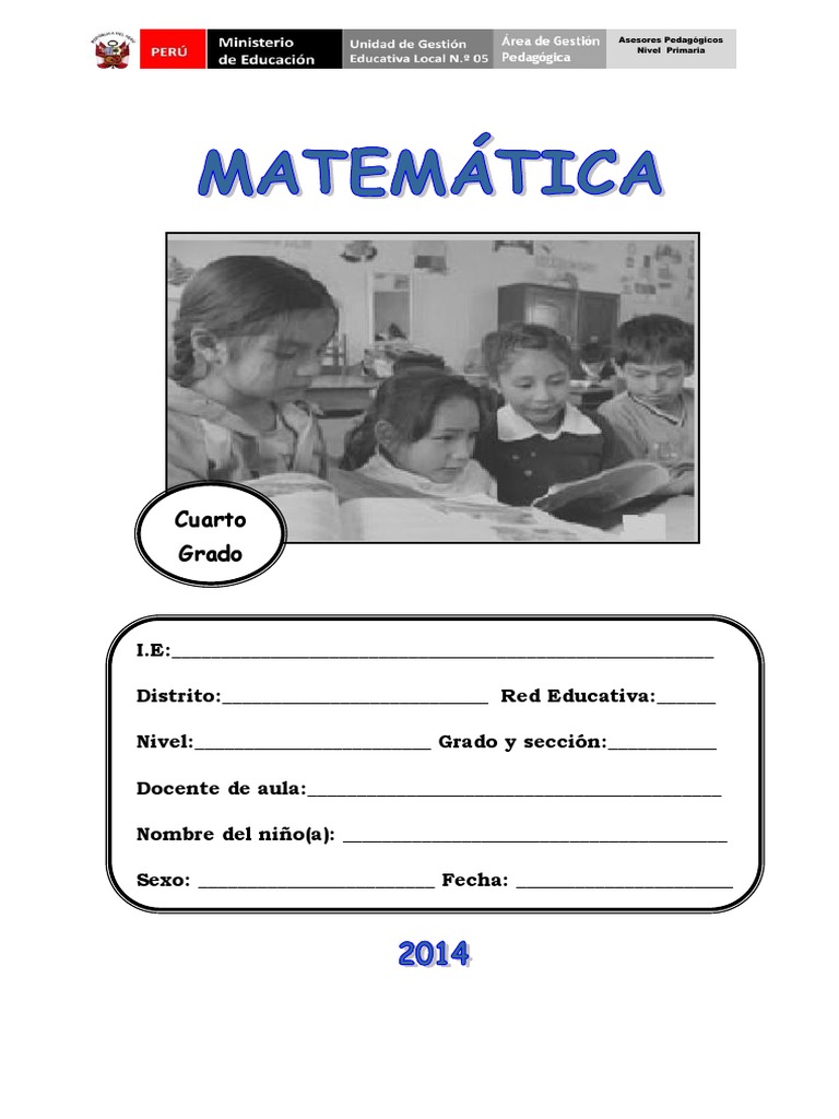 CUARTO GRADO DE PRIMARIA CUARTO GRADO MATEMÁTICA INDICACIONES Lee cada texto y cada pregunta con mucha atención. Luego. resuelve la pregunta y marca con una “X” la respuesta correcta. APELLIDOS Y NOMBRES: __________________________ ________________________________________________ INSTITUCIÓN EDUCATIVA: _________________________ MODELO DE GESTIÓN DE CALIDAD ________________________________________________ VENTANILLA SECCIÓN: _______________________________________ . Si lo necesitas puedes volver a leer.