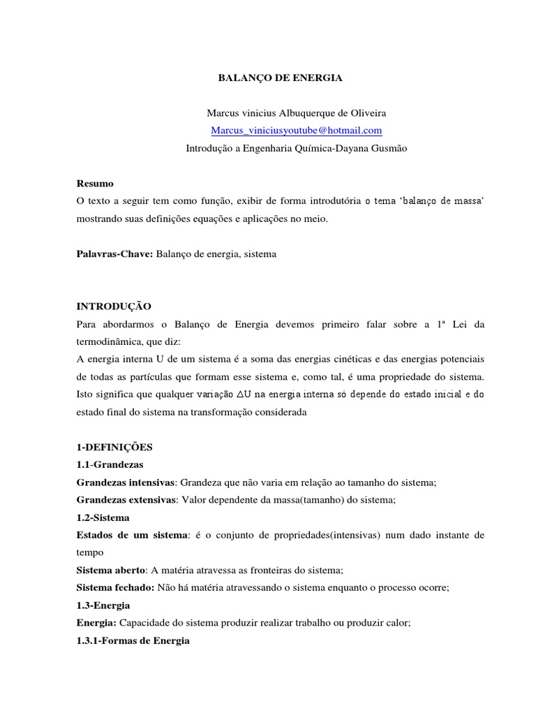 Para abordarmos o Balanço de Energia devemos primeiro falar sobre a 1ª Lei da