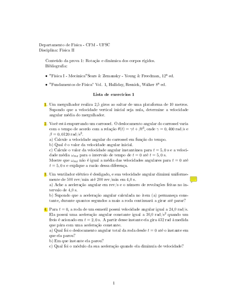 freio é acionado em t = 2, 0 s. A partir desse instante ela gira 432 rad à medida