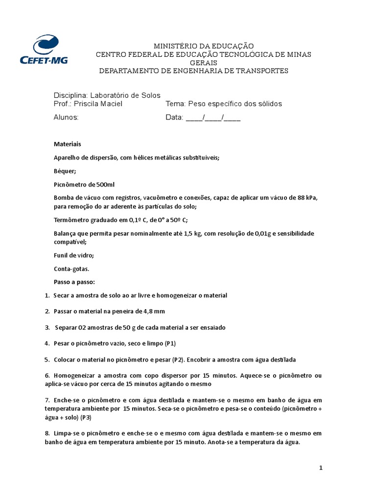 Prof.: Priscila Maciel Tema: Peso específico dos sólidos