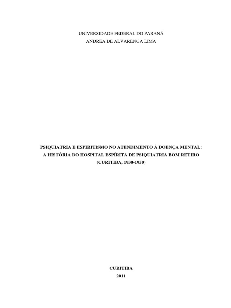 Mental. 3. Espiritismo – Curitiba (PR). 4. Psiquiatria – Paraná.
