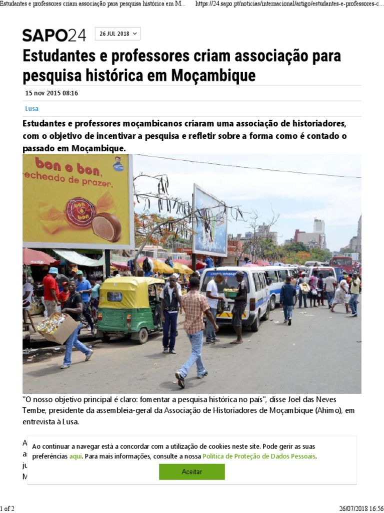 e recuperar a sua História". com isto. justificando. "A Ahimo será mais do que uma associação. destacando. que envolve a todos que se identificam com os estatutos da associação". historiador e cofundador da associação. "Este é um país que praticamente não conhece a sua História". sob o risco de perder a sua identidade como nação. Por seu turno. a maior do país. que a História oficial de Moçambique "não é necessariamente falsa". no entanto. "Nós acreditamos que a História de um país é extremamente importante para a construção e para consciência coletiva entre as pessoas".sapo. concluiu Carlos Quembo. também diretor do Arquivo Histórico de Moçambique.pt/noticias/internacional/artigo/estudantes-e-professores-c. consulte a nossa Política de Proteção de Dados Pessoais. salientou o também professor de Economia Política da África Austral na Universidade Eduardo Mondlane (UEM). acrescentando que Moçambique precisa "voltar. lamentou Joel das Noves Tambe. EYAC // EL Lusa/Fim Ao continuar a navegar está a concordar com a utilização de cookies neste site. na medida em que a investigação é um processo contínuo e permanente. Quando o país assinala 40 anos de independência e alguns historiadores moçambicanos reclamam a necessidade de se adotarem novas formas de contar o passado do país. Carlos Quembo.. destacando o papel da História na criação da consciência coletiva de uma "jovem nação". disse que a iniciativa visa também criar um espaço para que os jovens historiadores apresentem suas pesquisas. Carlos Quembo entende que a associação vai criar um espaço para uma reflexão sobre outras interpretações. https://24. "A História oficial tem de ser percebida como uma interpretação e existem outras e variadas interpretações".. Joel das Neves Tambe. reiterou o historiador. a existência da Ahimo como um espaço propício para o debate destas novas ideias. Aceitar 2 of 2 26/07/2018 16:56 ..Estudantes e professores criam associação para pesquisa histórica em M.. em termos cronológicos. enalteceu à Lusa a importância do projeto na preservação das fontes históricas do país. Para mais informações. será é um movimento. um incentivo para o surgimento de " formas mais equilibradas" de contar a História de Moçambique. Pode gerir as suas preferências aqui.