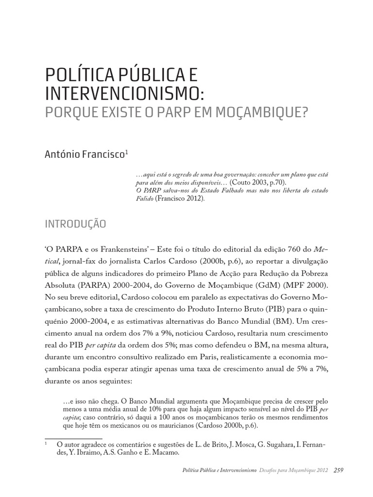 Política Pública e Intervencionismo Desafios para Moçambique 2012 259