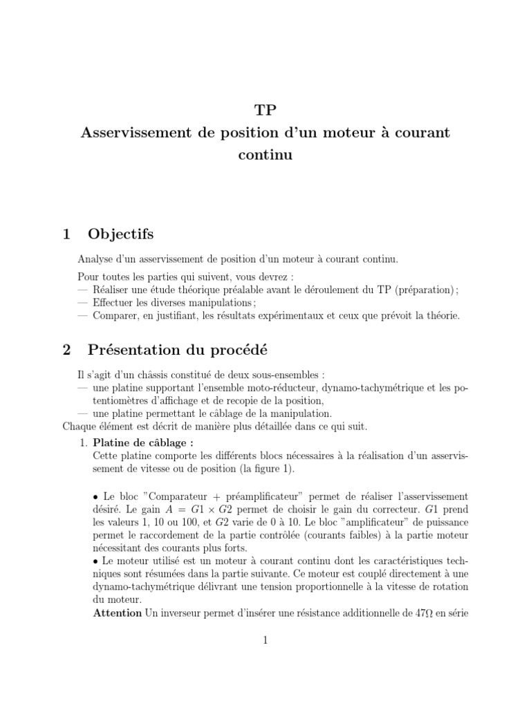 CHAPITRE 1. Asservissement de vitesse et de position d’un moteur à CC