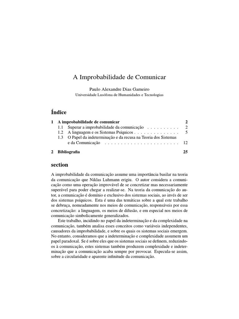 sociais do autor. Apesar da improbabilidade, a comunicação afirma-se como
