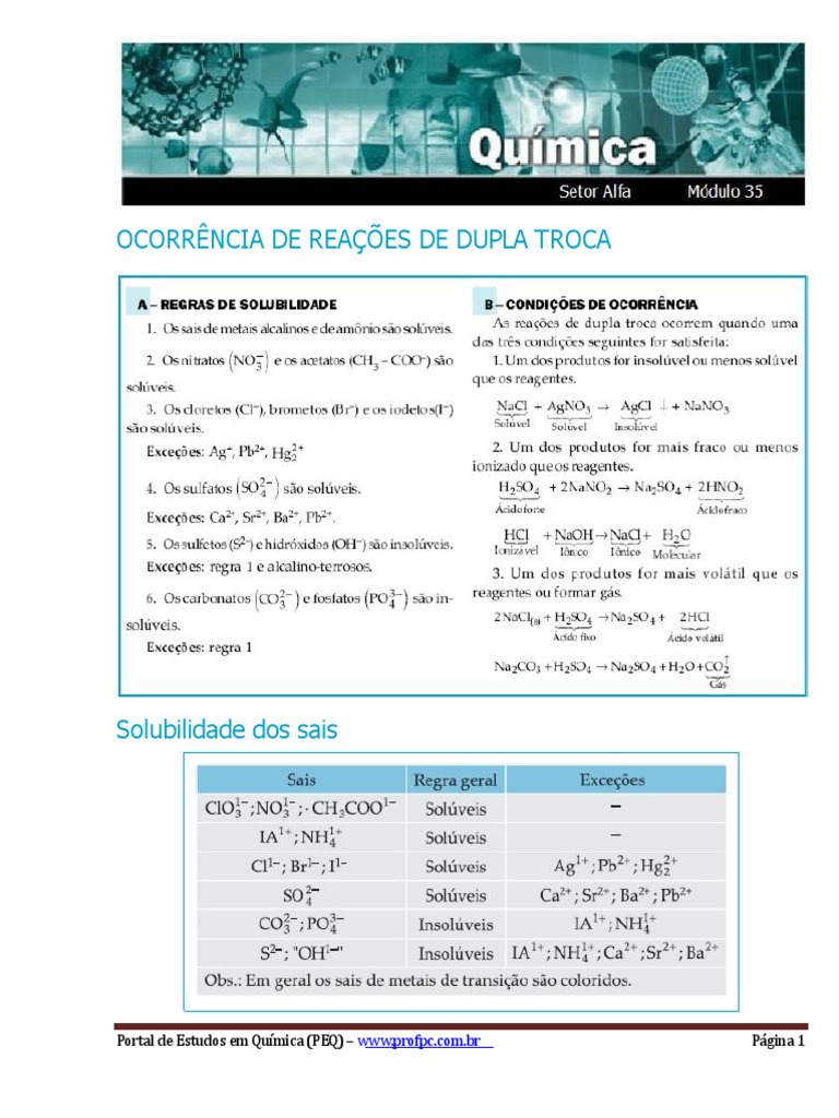 Nota: não serão consideradas justificativas baseadas em regras de solubilidade conhecidas a priori, isto