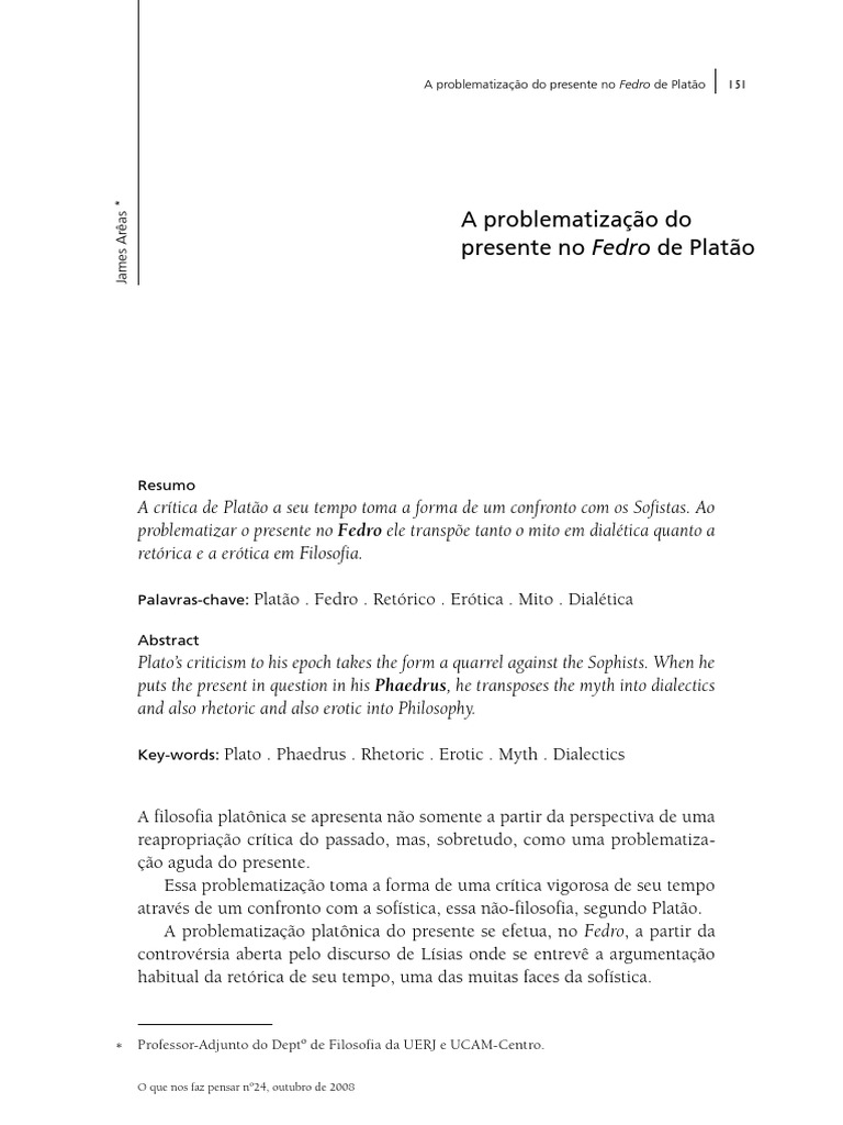 156 James Arêas A problematização do presente no Fedro de Platão 157