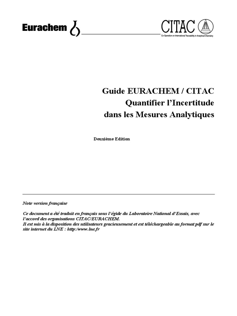 de l’incertitude dans les mesures, appliquées à un large éventail de mesures. Ce document EURACHEM montre