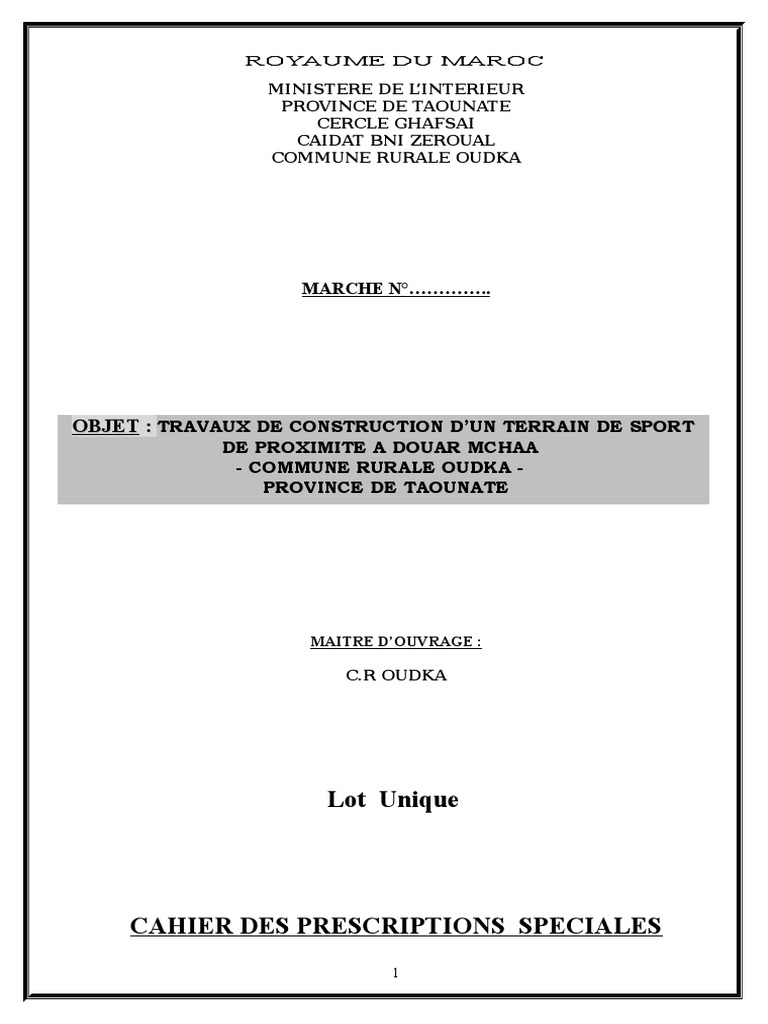 le présent Cahier des Prescriptions Spéciales
