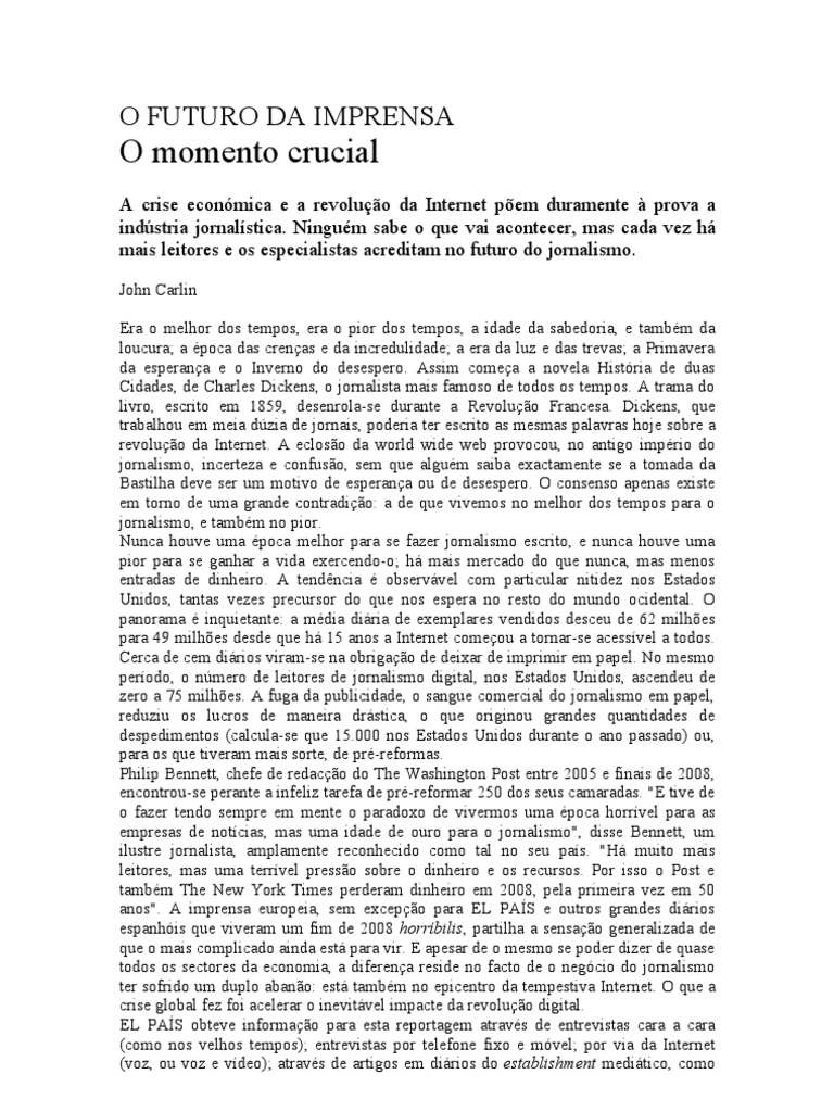 jornalismo como o de hoje, e como o dos tempos de Dickens, se possa sustentar na era