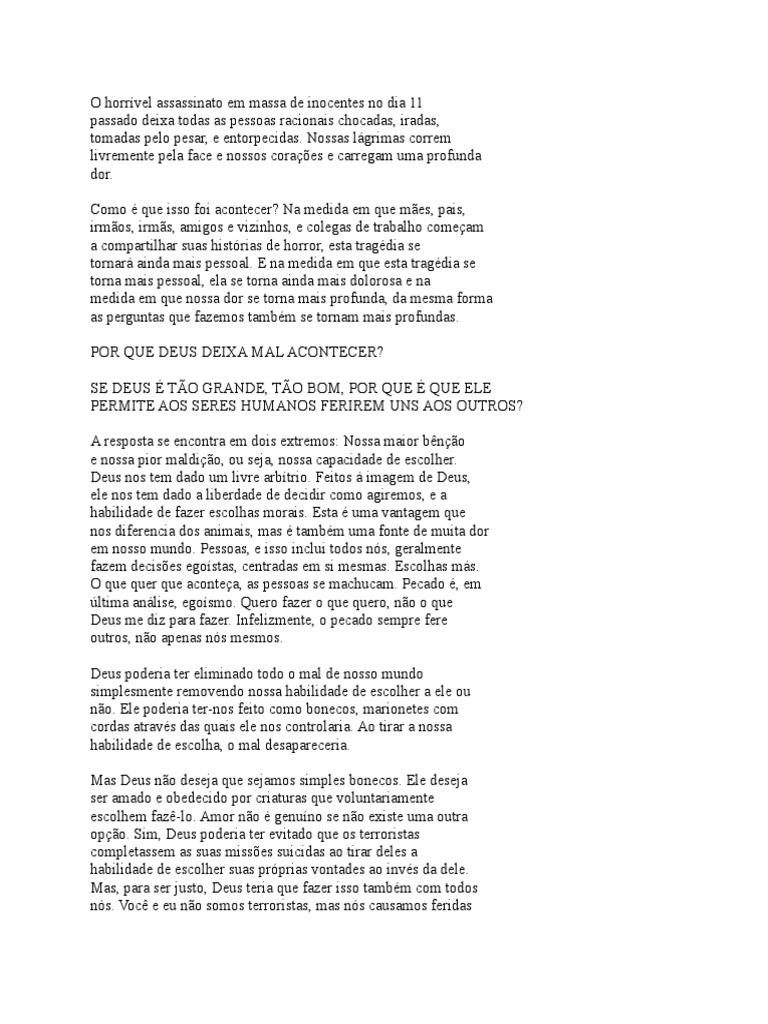 ter sido vontade de Deus". Não faz nenhum sentido! Em um mundo