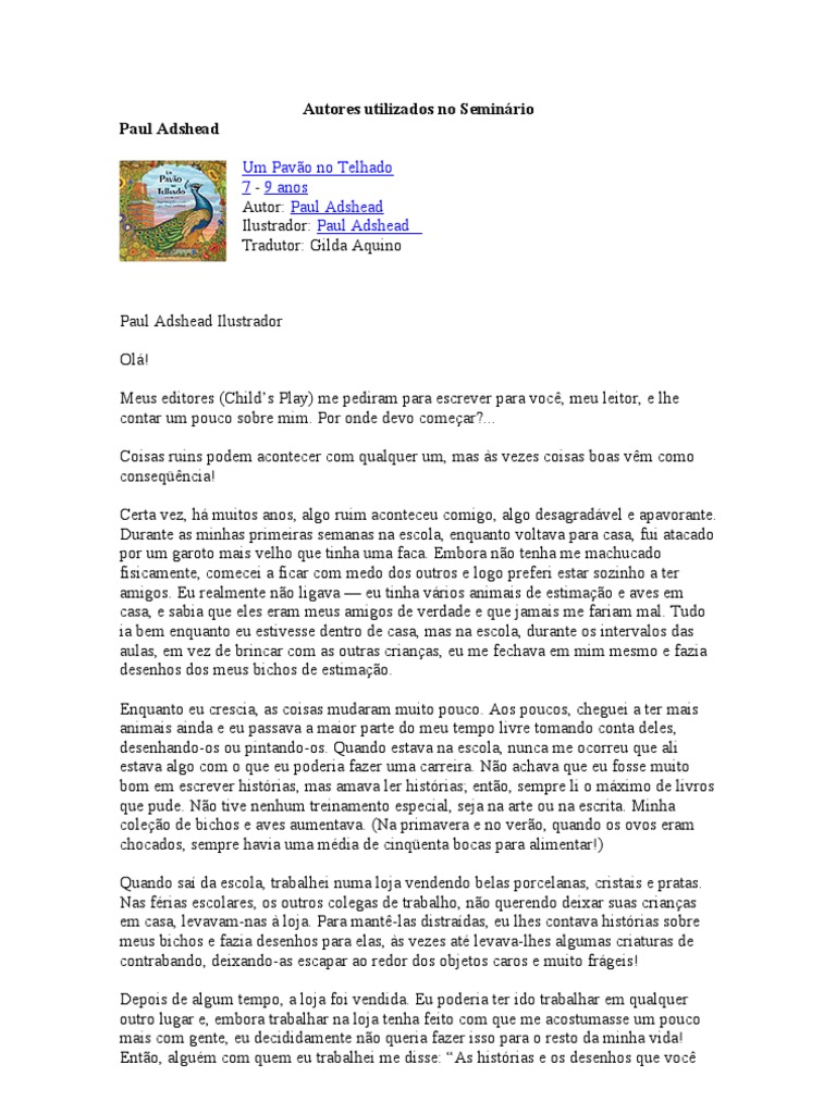 Meus editores (Child’s Play) me pediram para escrever para você, meu leitor, e lhe