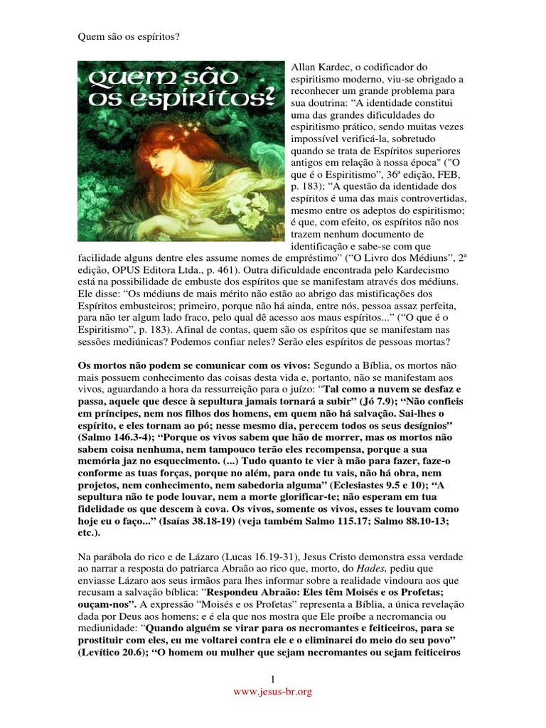 Espiritismo”, p. 183). Afinal de contas, quem são os espíritos que se manifestam nas