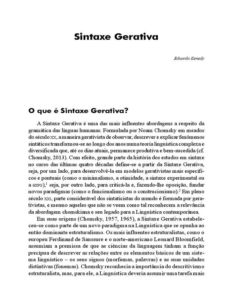 KENEDY, E. Curso básico de Linguística Gerativa. São Paulo: Contexto, 2013.