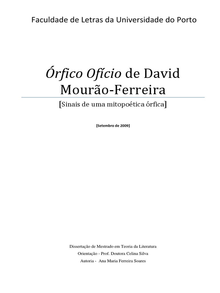 David Mourão-Ferreira, has reenacted an ancestral orphic mythopoetics, one that conceives the