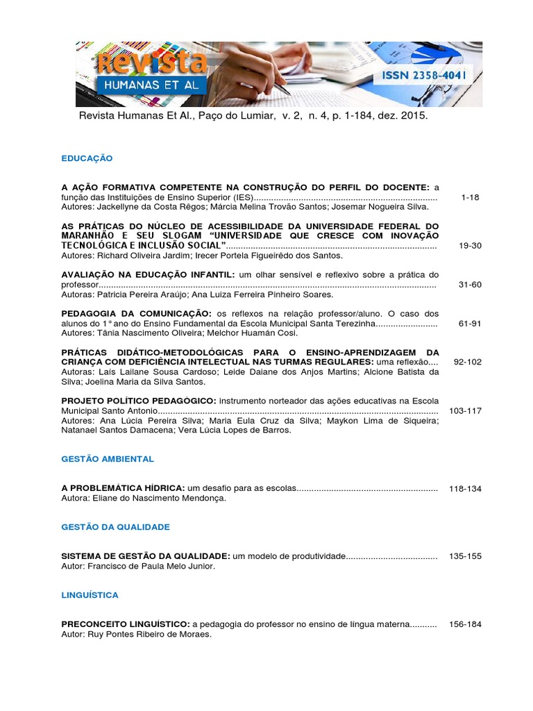 Revista Humanas Et Al., Paço do Lumiar, v. 2, n. 4, p. 1-184, dez. 2015.