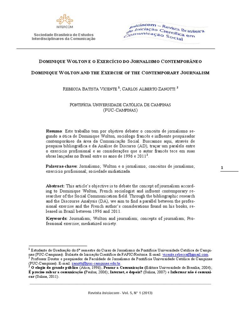 DOMINIQUE WOLTON AND THE EXERCISE OF THE CONTEMPORARY JOURNALISM