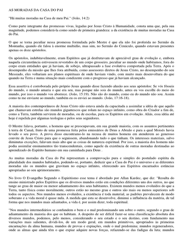 pluralidade dos mundos habitados, podendo-se, portanto, deduzir que a Casa do Pai é o universo e as diferentes