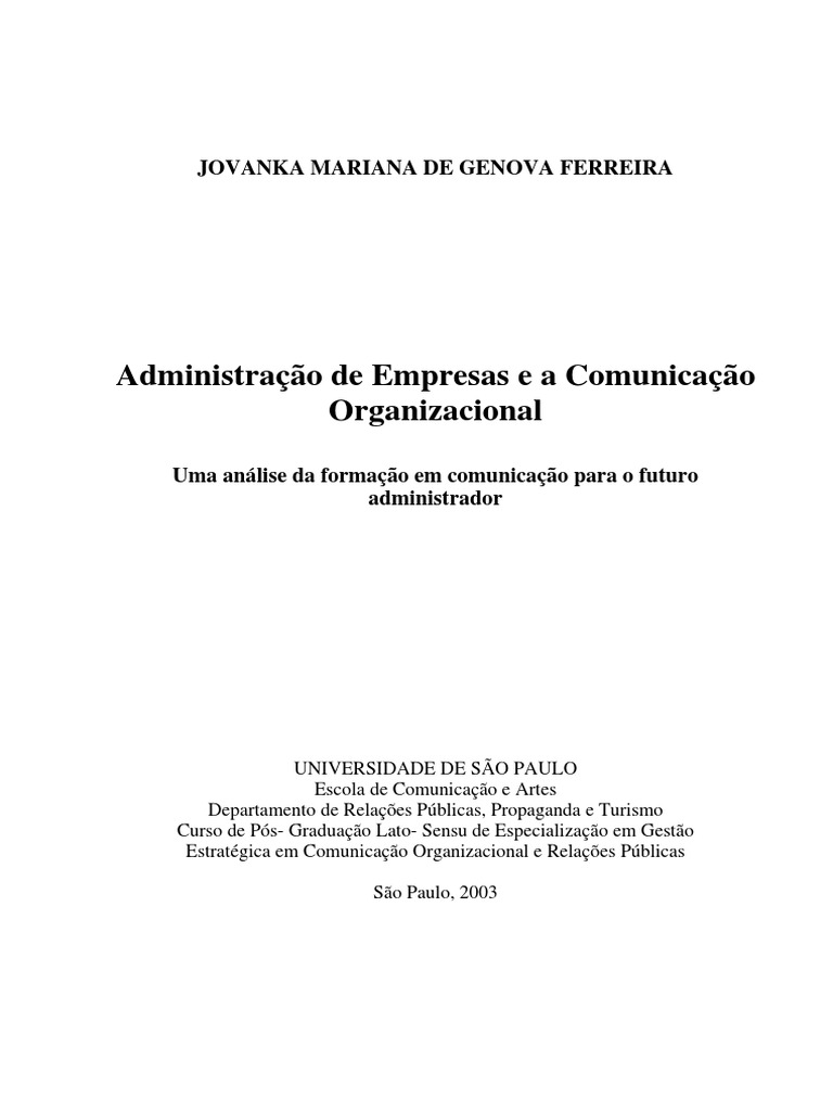 Públicas, Propaganda e Turismo da Escola de Comunicações e