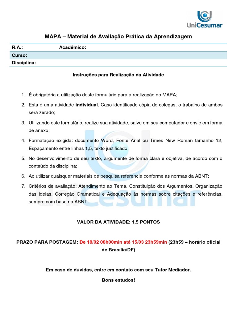 3. Utilizando este formulário, realize sua atividade, salve em seu computador e envie em forma
