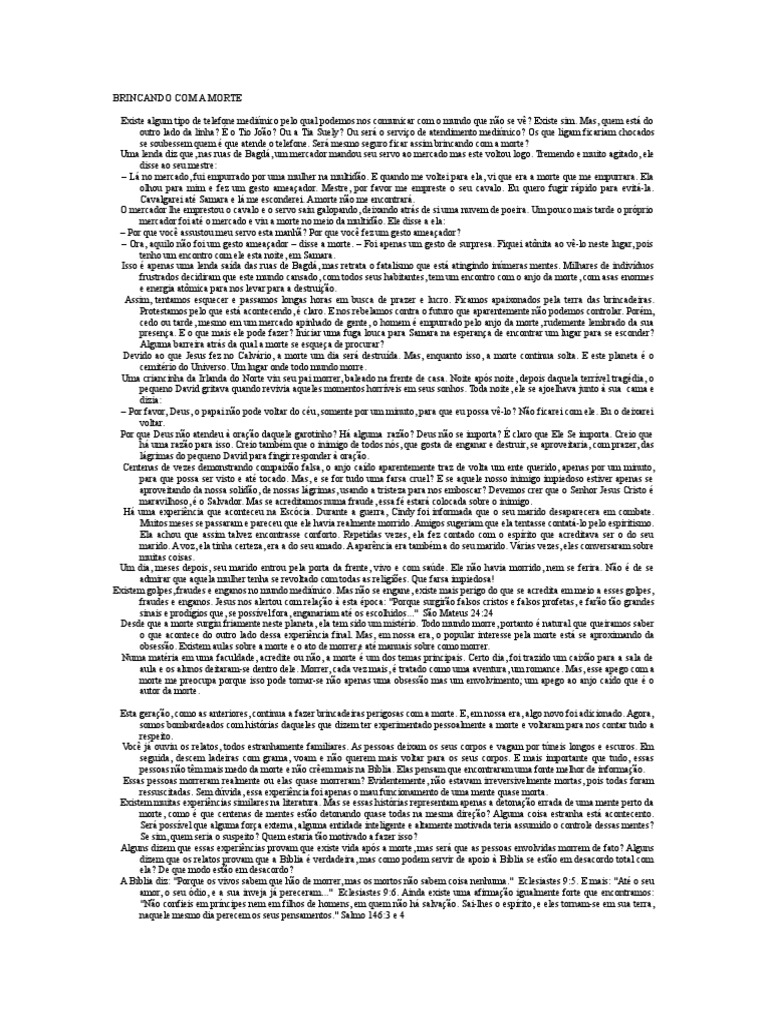 assim como a Bíblia diz, está furioso porque ele sabe que o seu tempo é curto. O espiritismo está se espalhando pelo mundo e