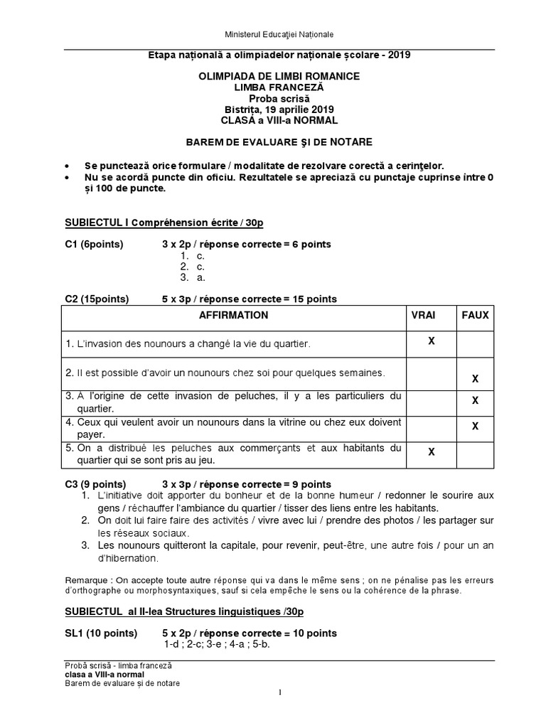 SUBIECTUL al II-lea Structures linguistiques /30p
