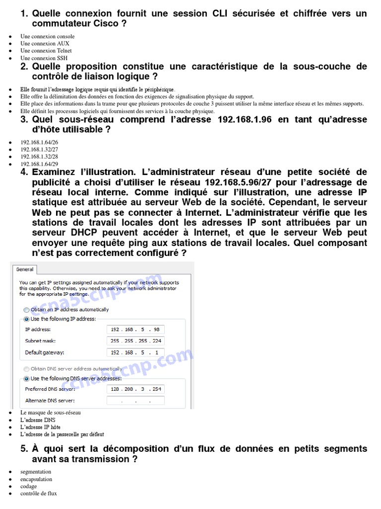 3. Quel sous-réseau comprend l’adresse 192.168.1.96 en tant qu’adresse