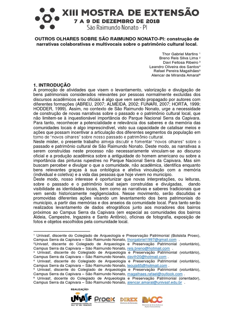 passado e patrimônio cultural de São Raimundo Nonato. Deste modo, as narrativas a