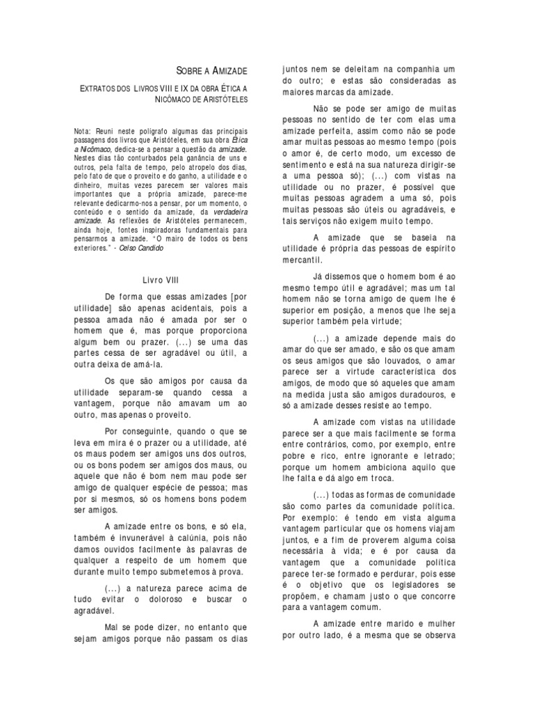 amizades também são passageiras. Mas o (pois o amigo é um outro “eu”), pensa-se