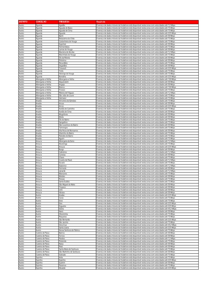 serviço de dados móveis da Vodafone está disponível nesta zona com velocidades até 43,2 Mbps |