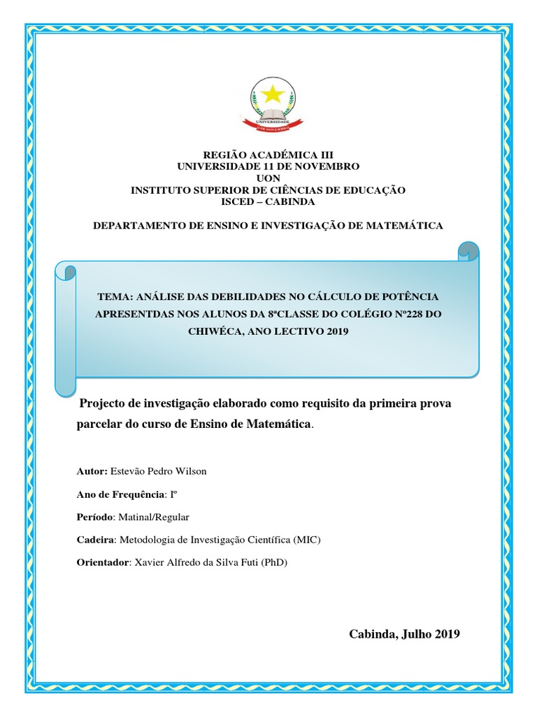 Orientador: Xavier Alfredo da Silva Futi (PhD)