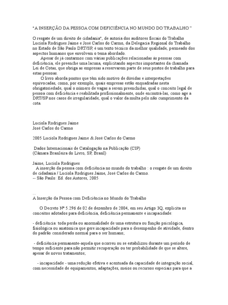 A inserção da pessoa com deficiência no mundo do trabalho : o resgate de um direito