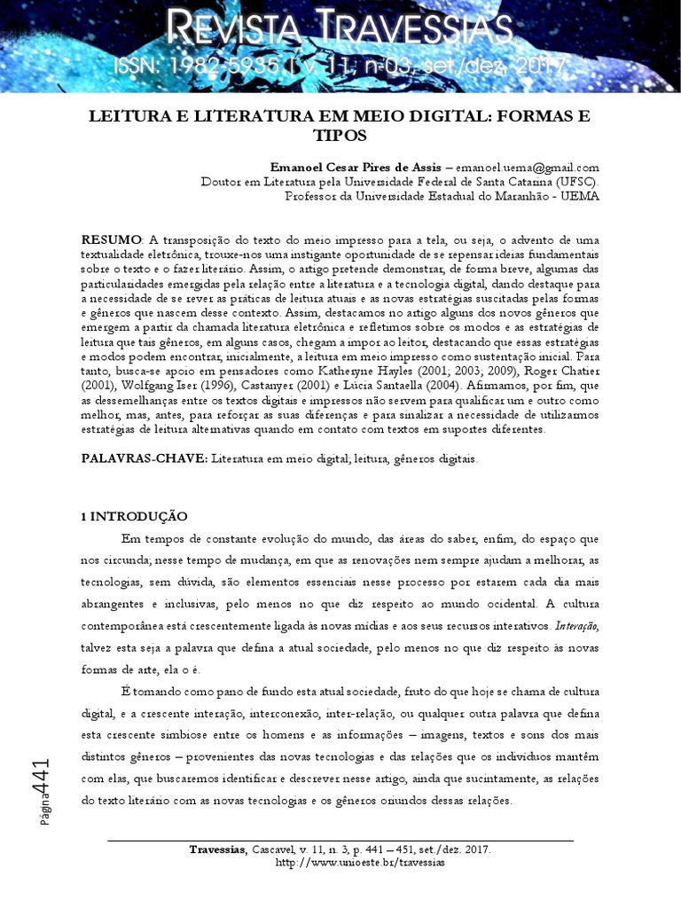 Leitura e literatura em meio digital: formas e tipos | Emanoel Cesar Pires de Assis