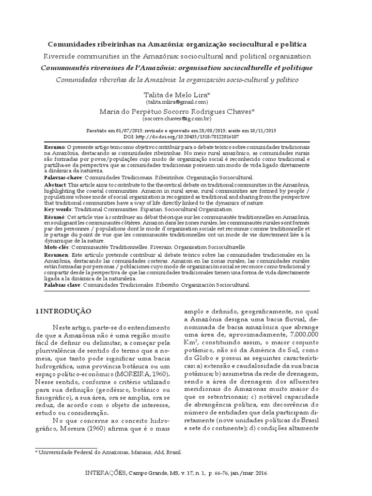Abstract: This article aims to contribute to the theoretical debate on traditional communities in the Amazônia,